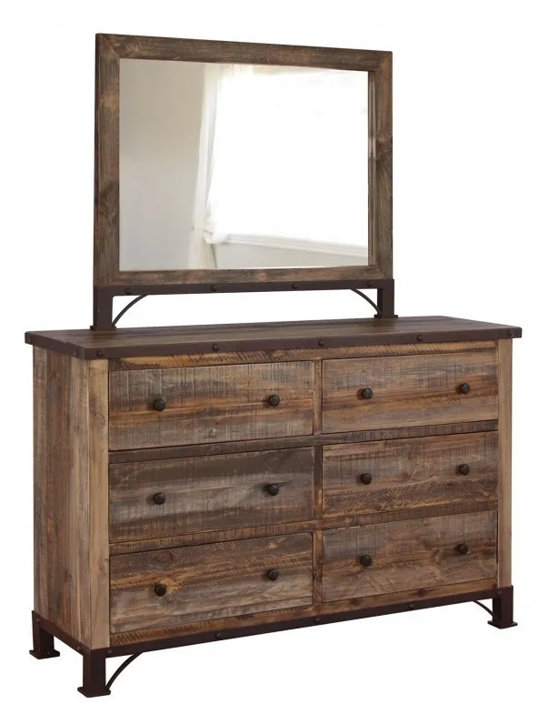 FEATURES:1. Featuring Solid Pine2. Soft multi-color distressed finish on hand brushed wood3. Drawers feature dovetail joinery on fronts of solid pine construction drawers.4. Ball- Bearing metal glides on all drawers5. Bases feature solid, hand-forged iron. Trim on moldings of casepieces and Bed feature iron w/ hand applied nailheads.6. Mortise and tenon case construction on every piece7. Wood carved pulls BENEFITS:1. Selected pine a great value2. Six step hand rubbed finish gives an antique look and added protection with clear lacquer coating. This nitrocellulose base finish won't bleed, fade or stain clothes3. Makes durable drawers for everyday use4. Ensures smooth glide5. Add value and a special hand-made artisan look6. High quality joinery construction provides lifetime service.