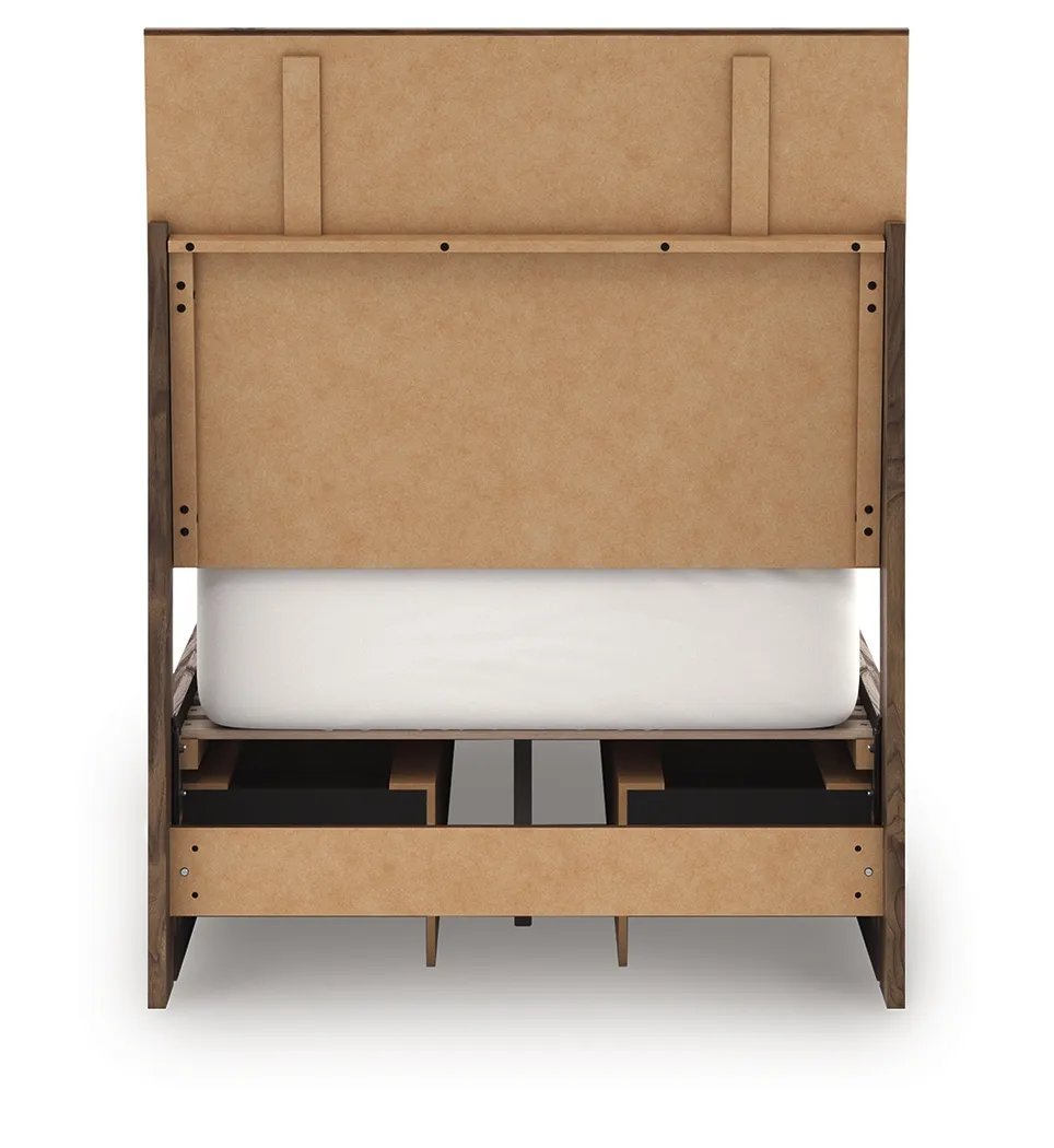 Includes headboard, footboard, 2 under bed storage sets and roll slats