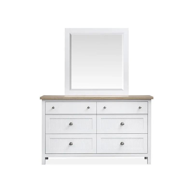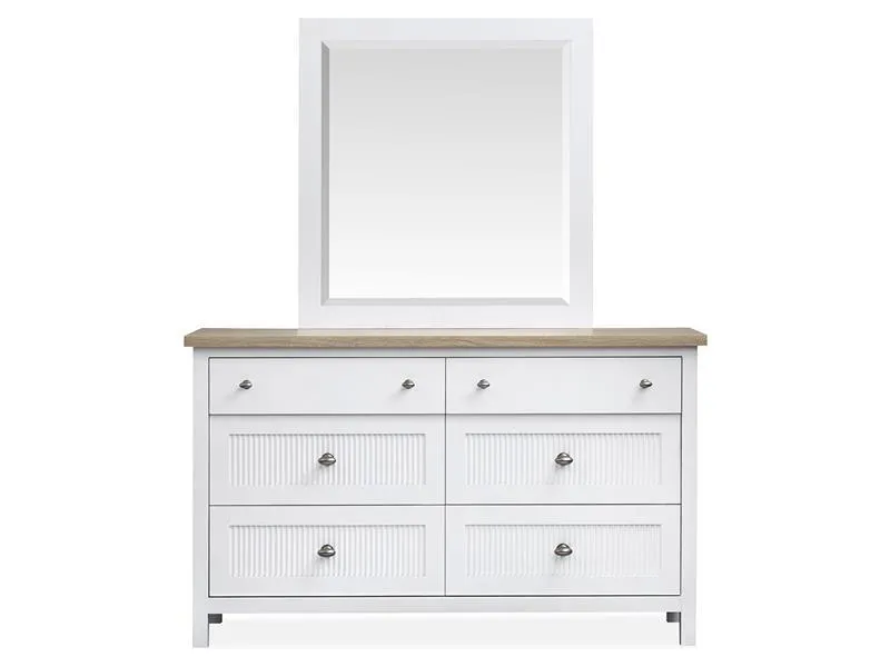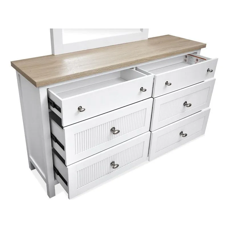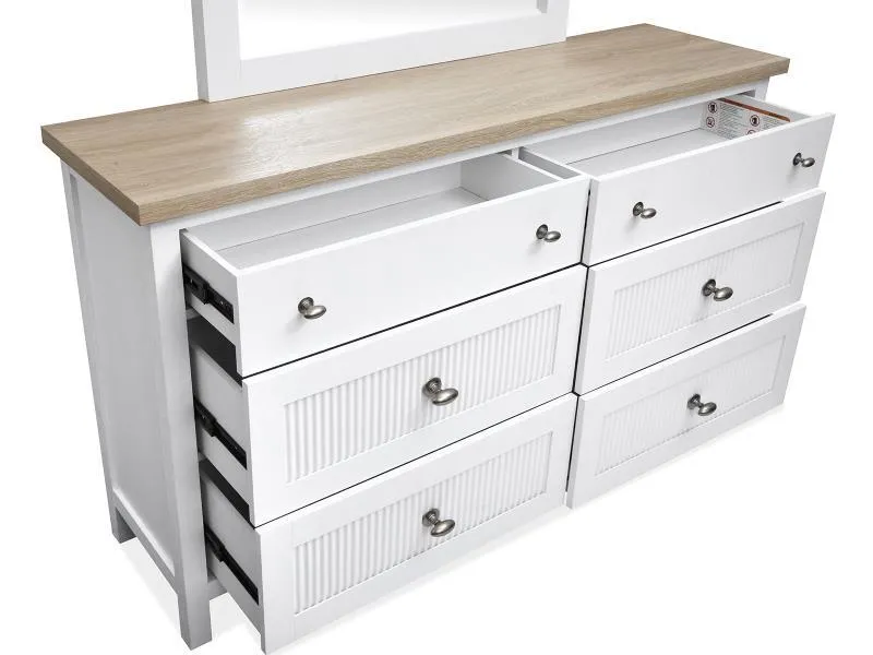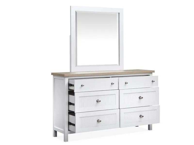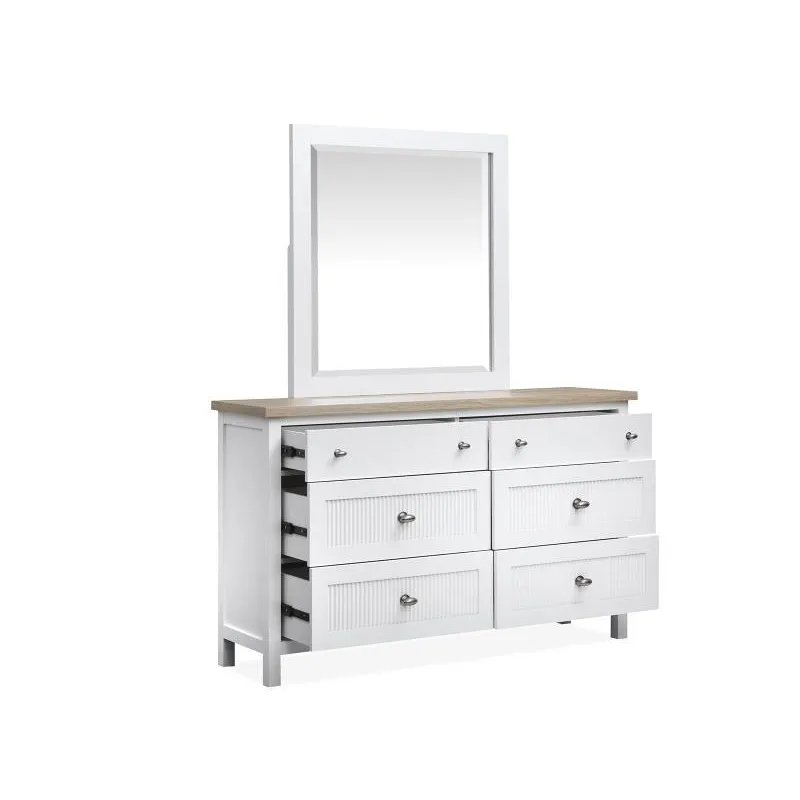 The Windmill Harbour Collection brings a laid-back and coastal vibe to your space with its soft White Whisp and Sand finishes. The two-tone design and featuring driftwood oak tops paired with a white-painted base and gives each piece a relaxed and beachy feel. The casegoods are thoughtfully designed with framed drawer fronts and decorative reeding and and recessed lower drawers that add a touch of character and charm. Whether you're looking to refresh your bedroom or create a cozy retreat and the Windmill Harbour Collection is the perfect blend of comfort and timeless coastal design.