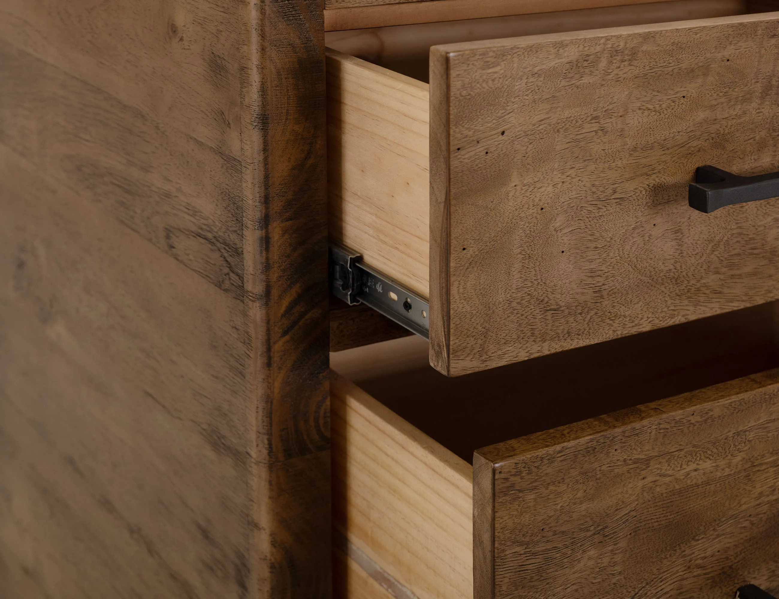 - English dovetail on 100% solid wood drawer fronts. Hafele steel slides.