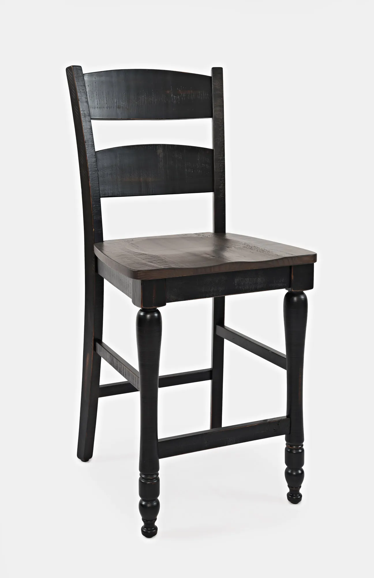 Experience the elegance of rustic farmhouse craftsmanship with the Madison County Collection. Made from solid reclaimed Pine, each piece showcases the natural beauty of the wood through unique weathering and intentional stress markings. Upgrade your dining room for entertaining guests or intimate family dinners with this set of two reclaimed Pine ladderback counter height barstools.