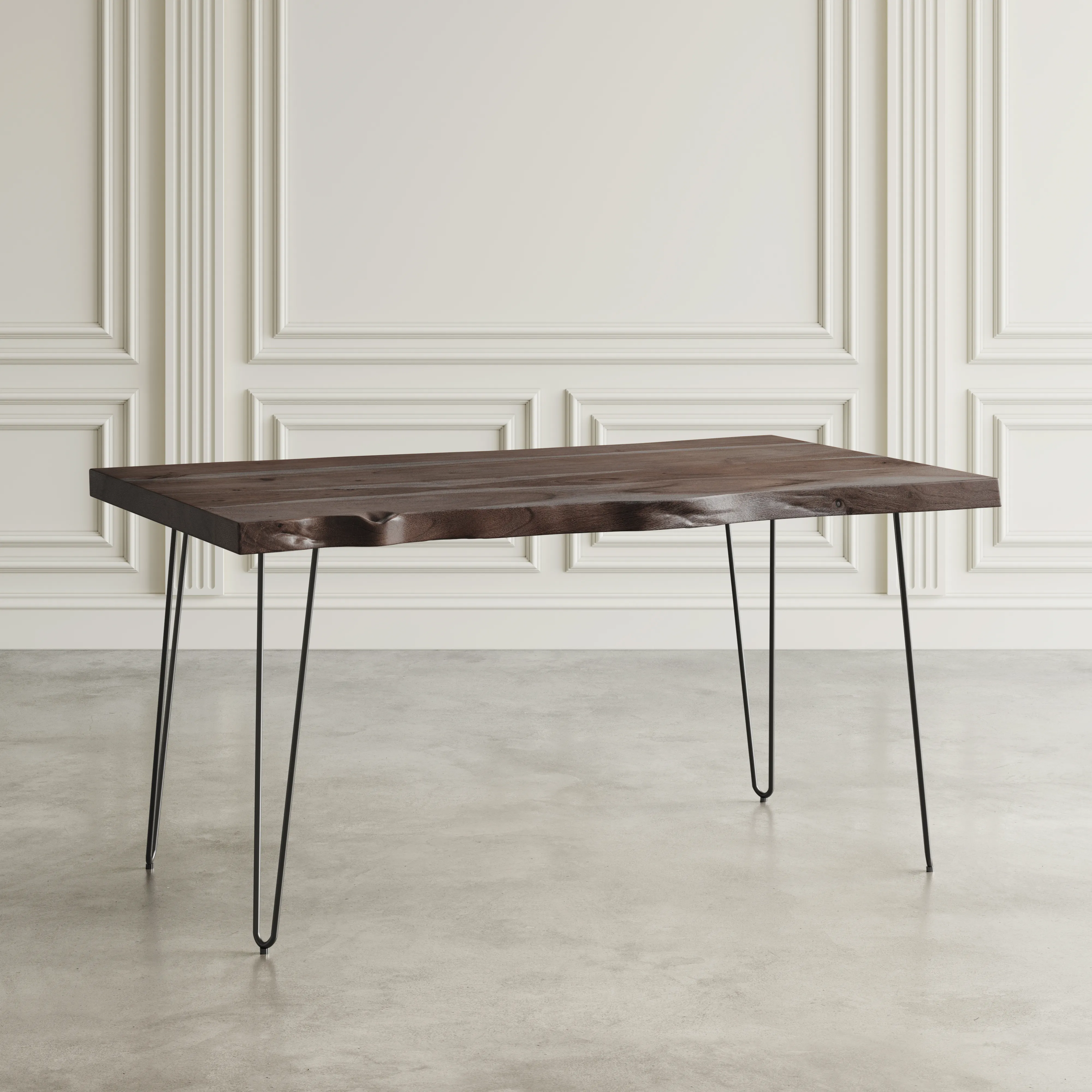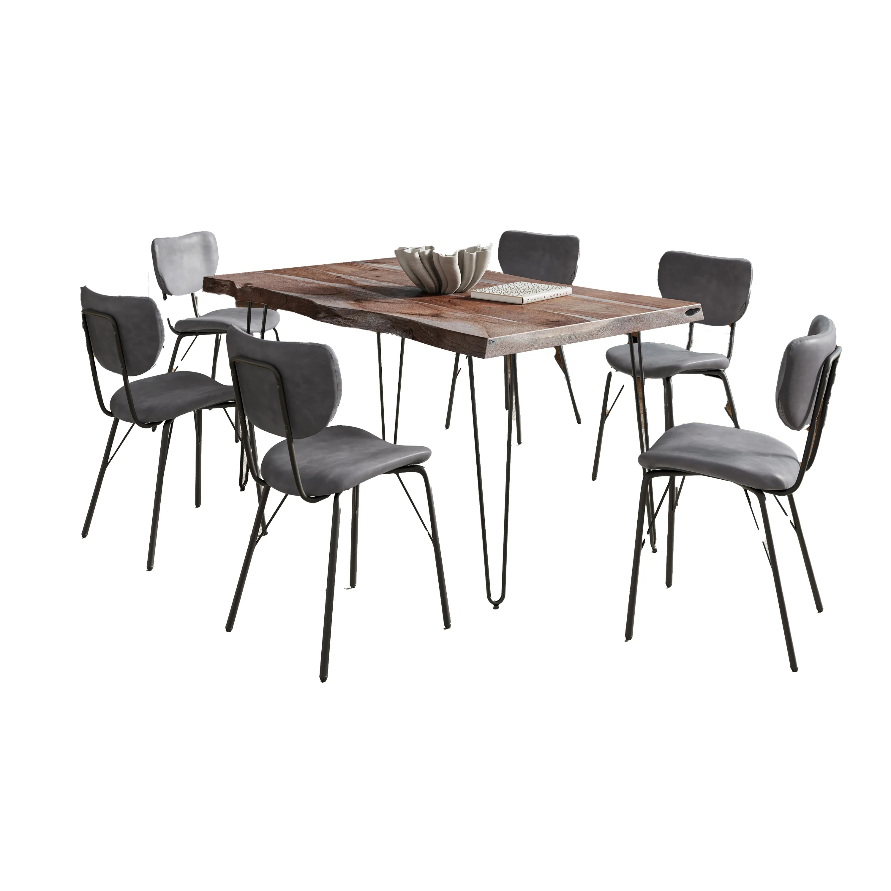 - -Set Includes 60 Inch Solid Wood Dining Table and Six Upholstered Chairs -Mid-Century Modern Faux Leather Split-Back Upholstery -Unique Variations in Live Edge to be Expected -Modern Hairpin Legs - - -