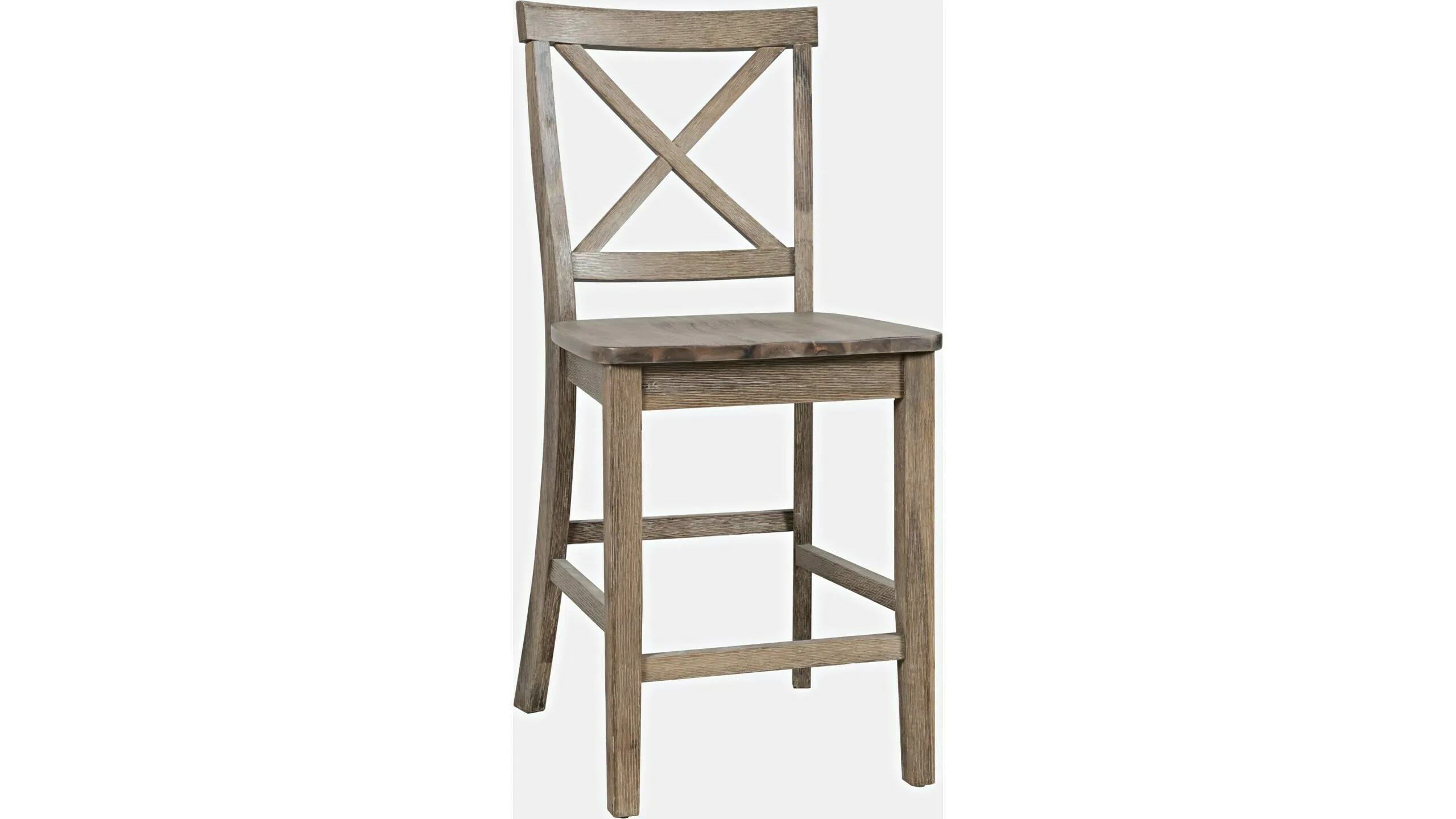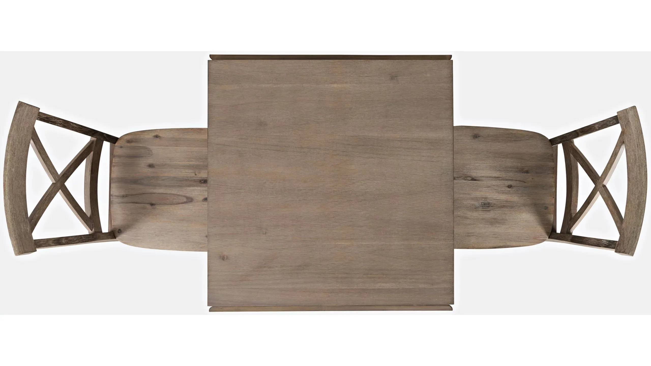 Set includes Eastern Tides Drop Leaf Counter Table and two Eastern Tides X Back Counter Stools.