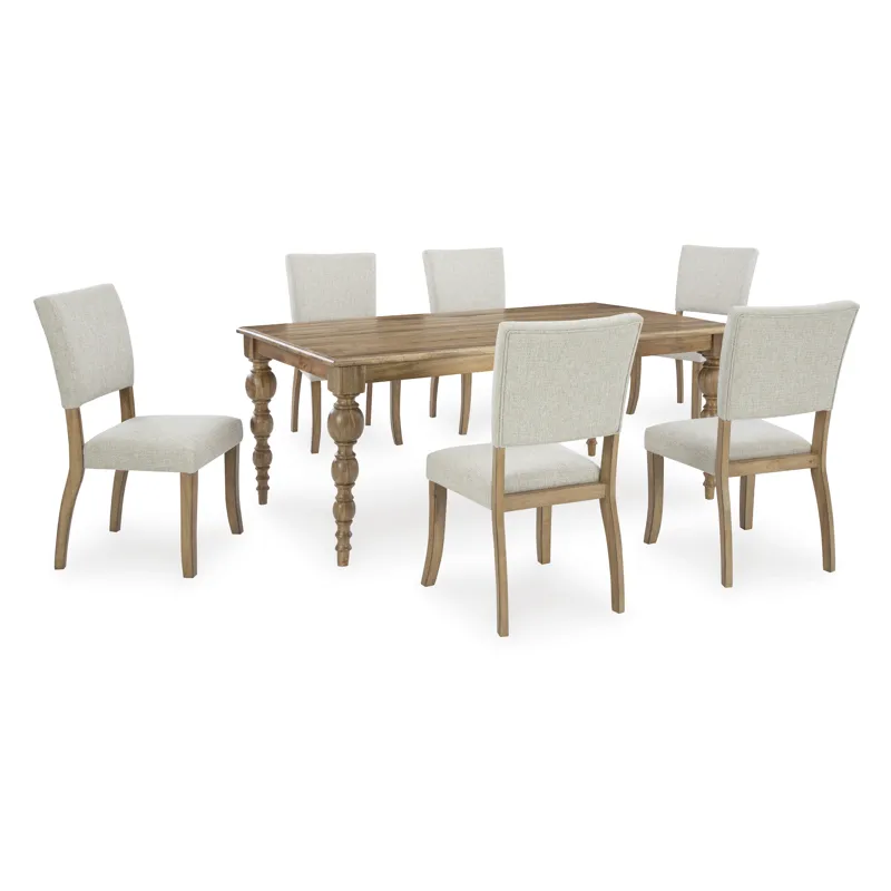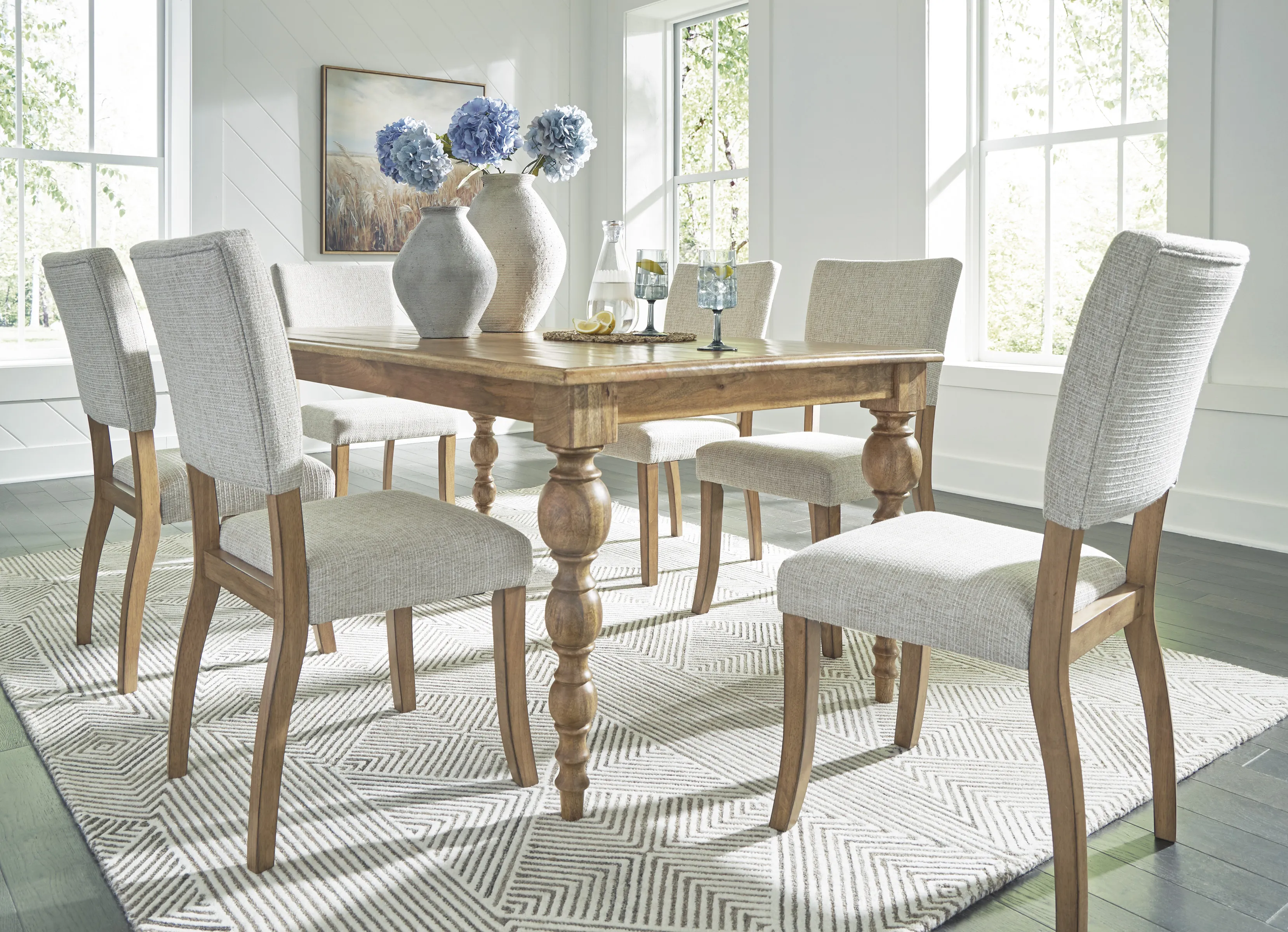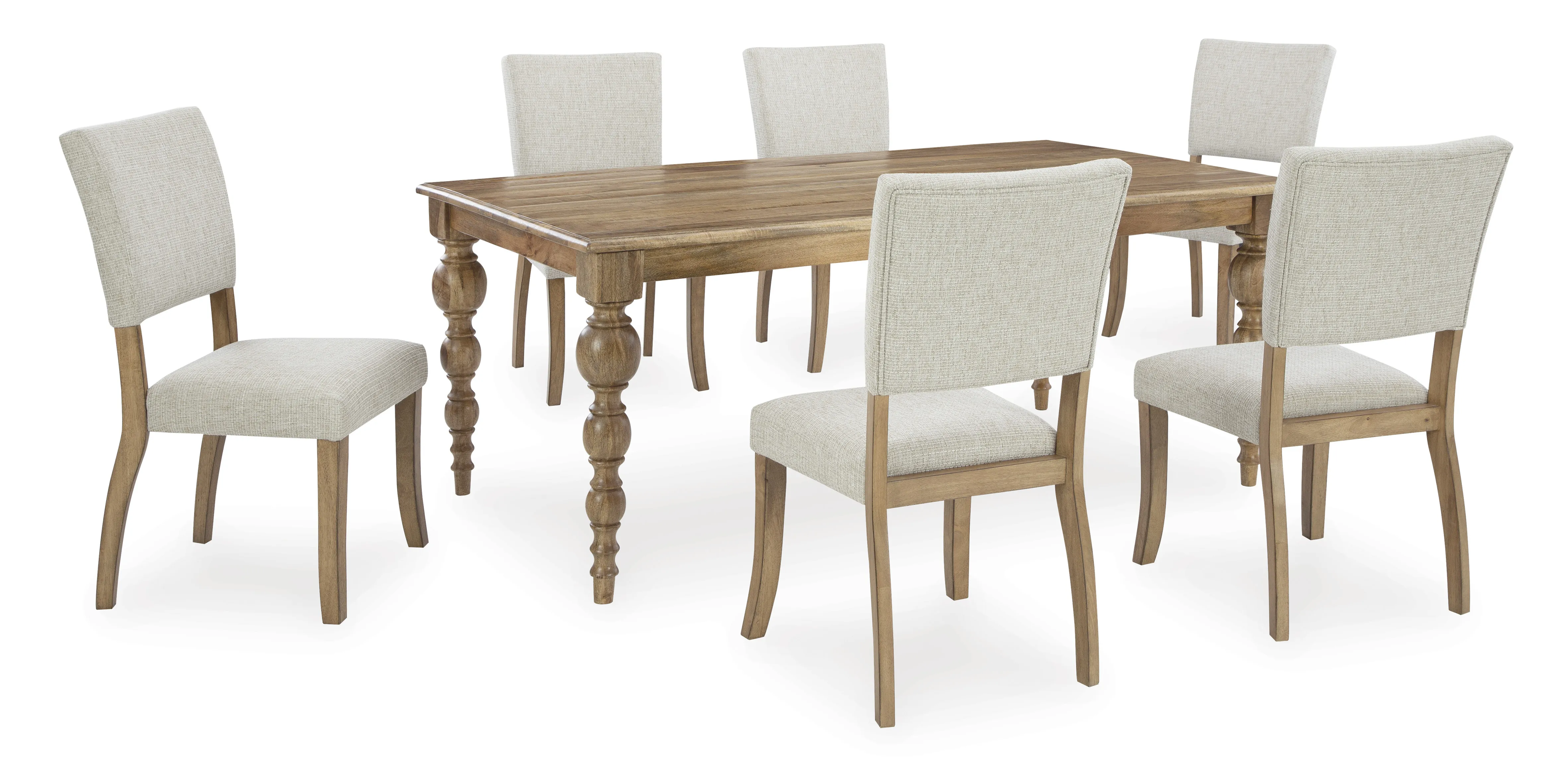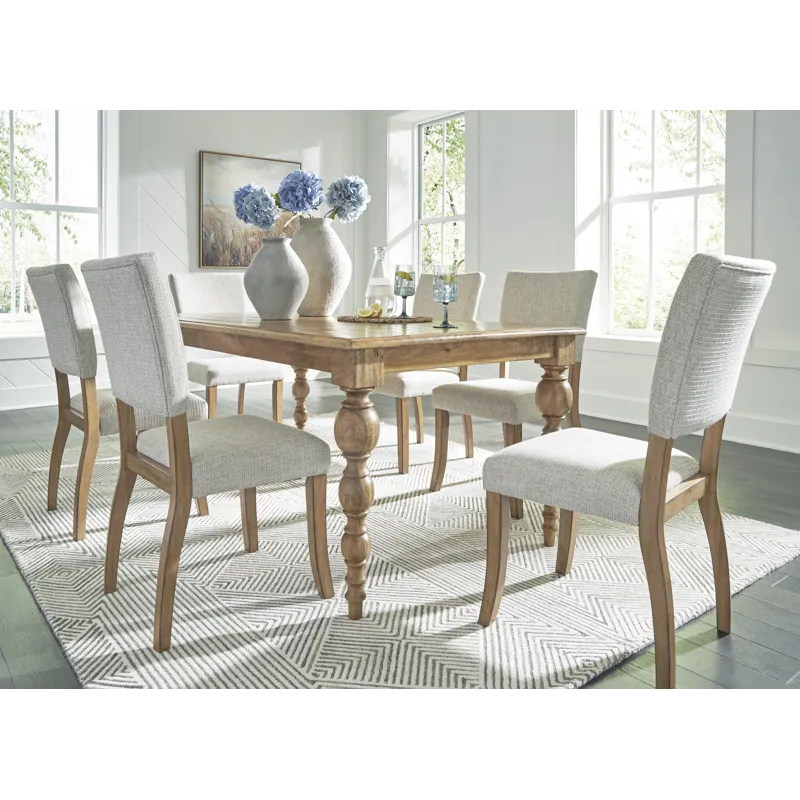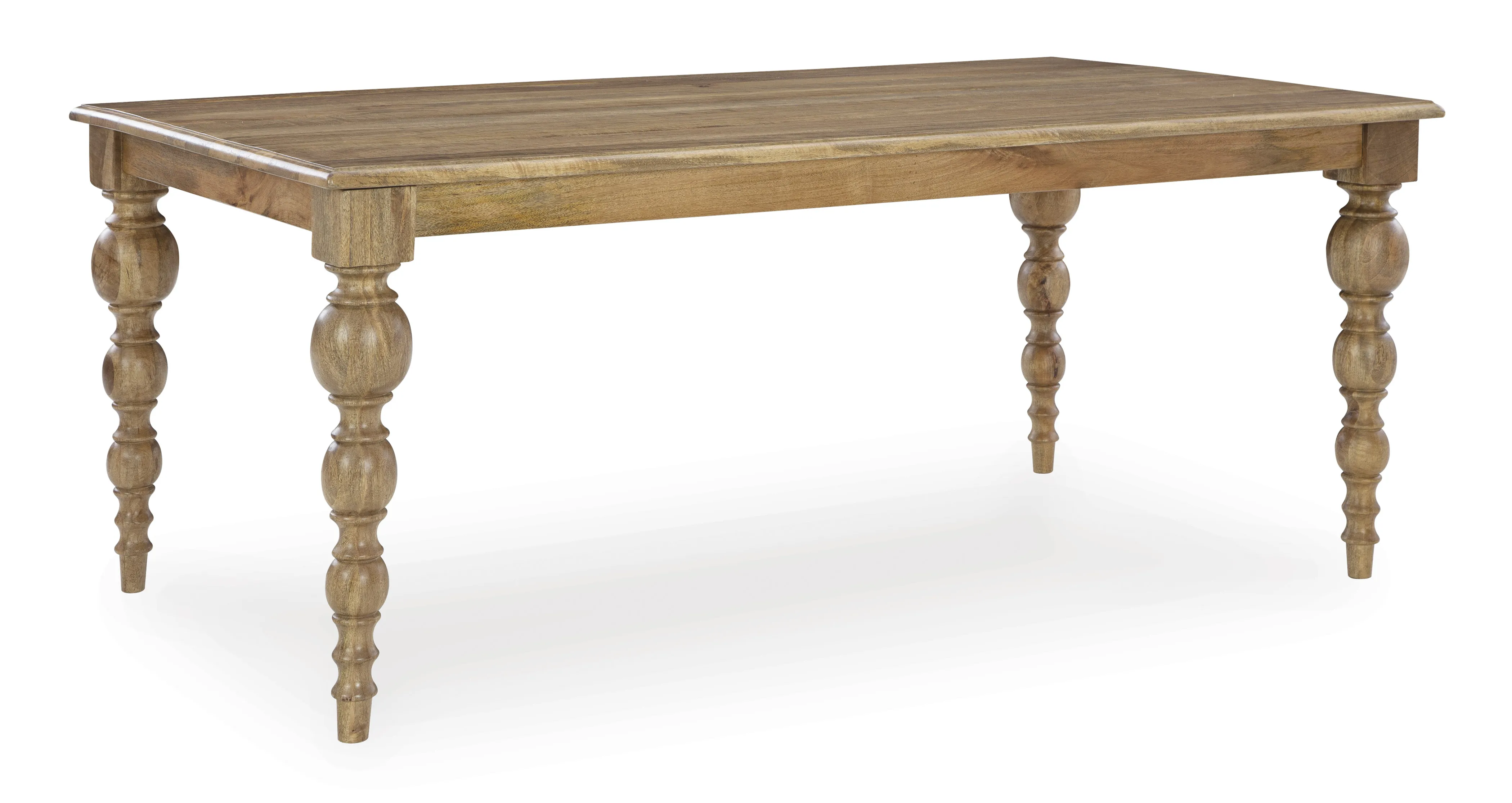 Rybergston Dining Table (D601-25): 72" W x 40" D x 30" H - Serve up timeless style with this dining table. Taking a curated approach to casual aesthetics, it’s finished in an inviting light wood tone. For added flair, a substantial tabletop and baluster turned legs round out this trend-right piece.