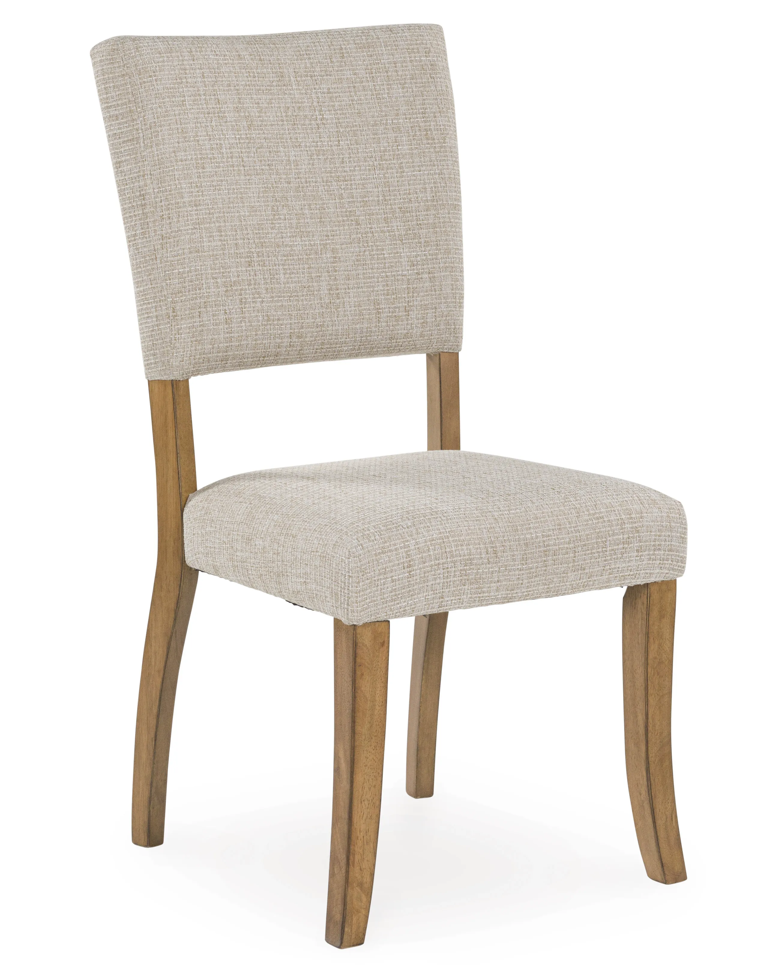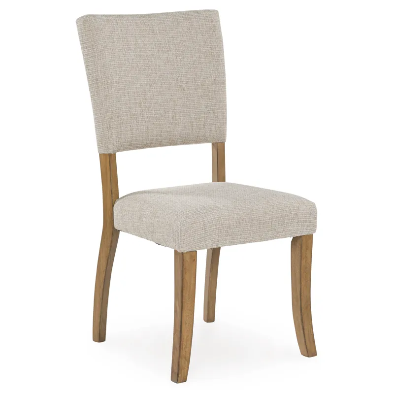 Rybergston Dining Chair x6 (D601-01): 19.5" W x 24" D x 38.5" H - Serve up timeless style with this dining chair. Taking a curated approach to casual aesthetics, the frame is finished in an inviting light wood tone. For added flair and function, the chic neutral Next-Gen Nuvella™ fabric is stain-resistant so you can dine worry-free.