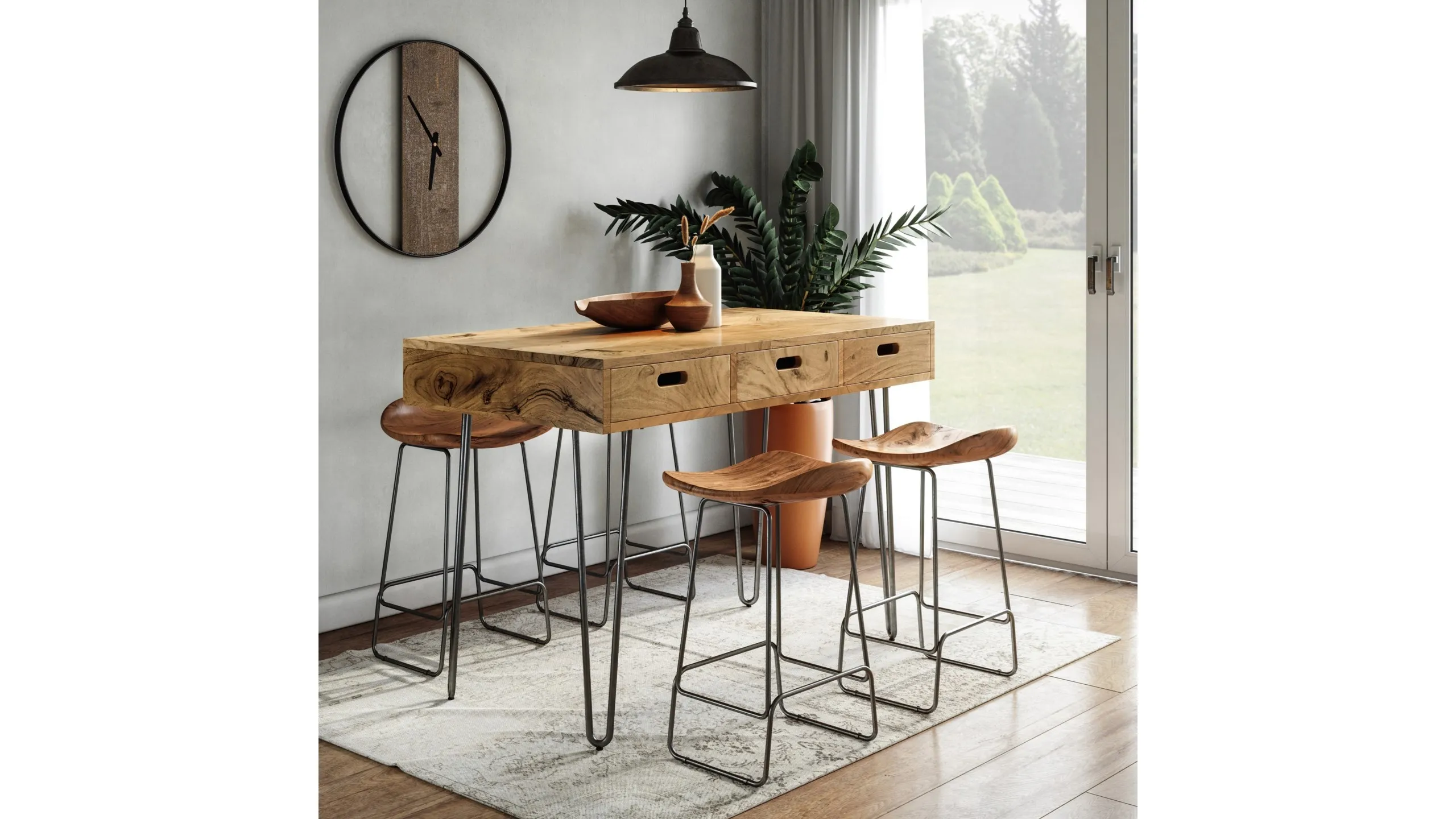 Rollins Counter Height Dining Table: Width (side to side): 52" W Depth (front to back): 28" D Height (bottom to top): 36" H