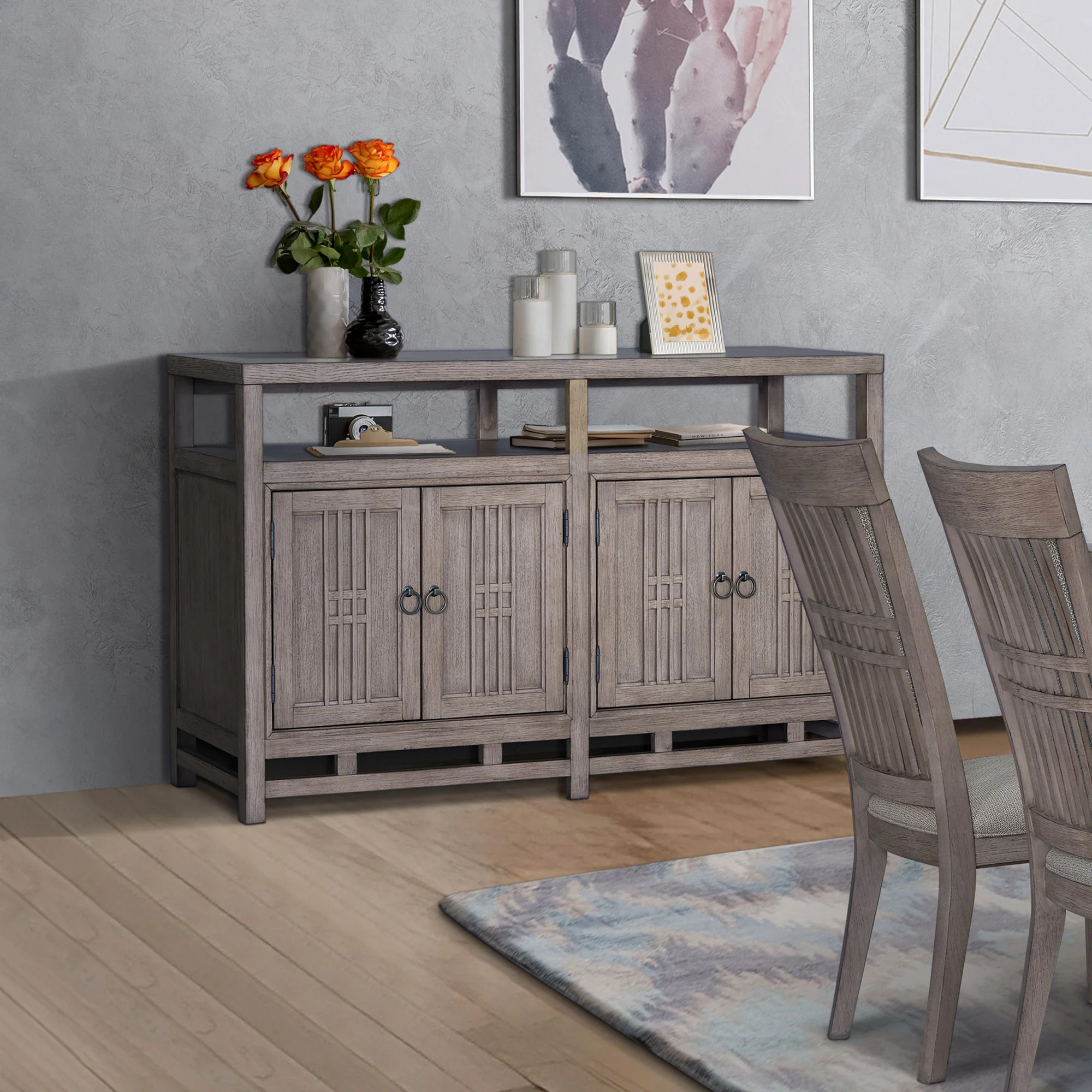 Experience the charm of the Fusion Server, where functionality meets refined aesthetics. Crafted from straight grain Oak adorned in a gentle Dawn finish, this piece features hand-rubbed antique brass pulls that enhance its transitional design. Perfect for any dining space, the Fusion Server combines elegance with practicality.