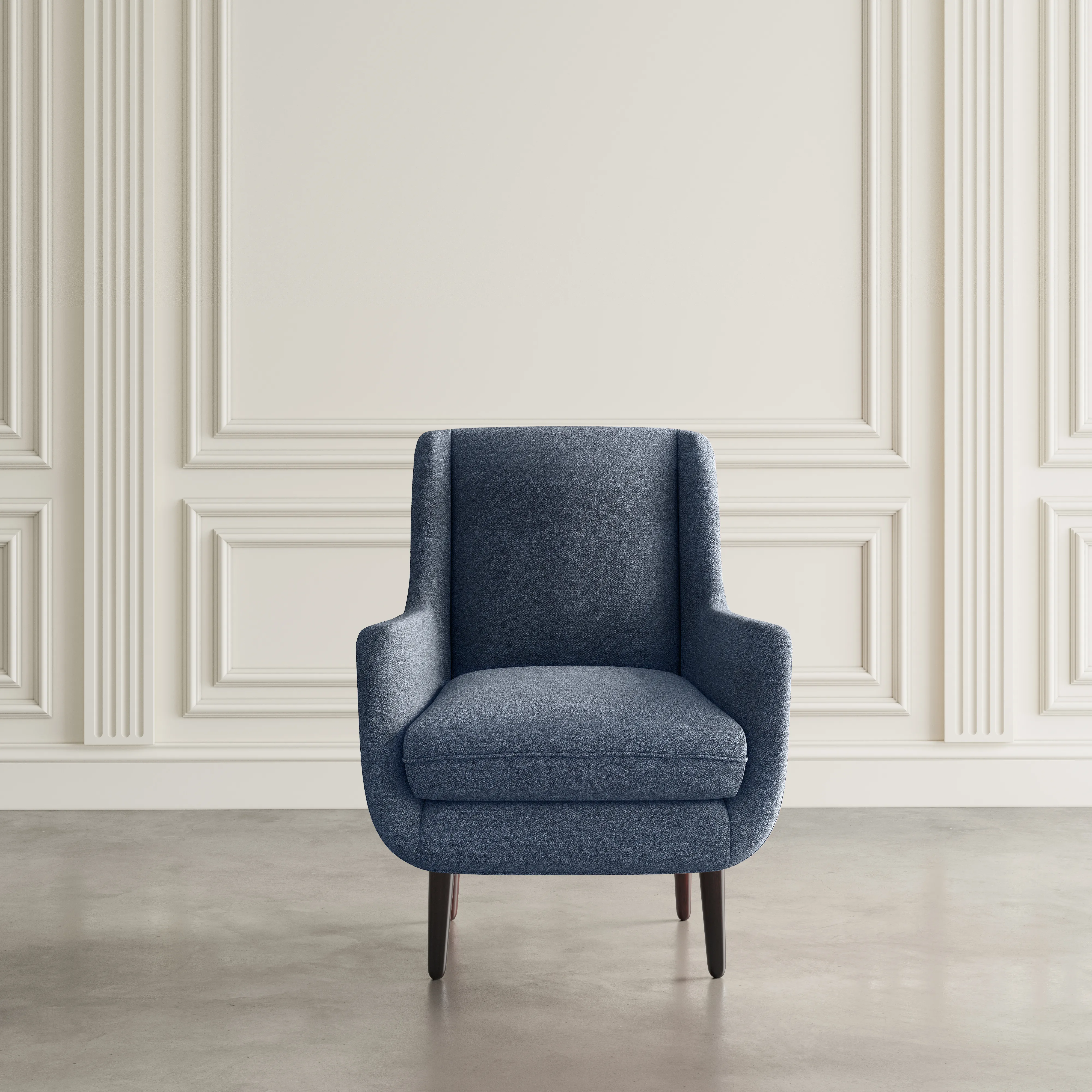 The stunning beauty and simplicity of Mid-Century modern design makes the Theo Accent Chair a must-have for anyone looking to upgrade their home. The soft plush fabric and flared arms are perfect for the living room or den, and the subtle minimalist silhouette is charming and unique. With three different finishes and rich brown tapered legs, the incredible blend of vintage and modern will be a welcome addition to your living space.
