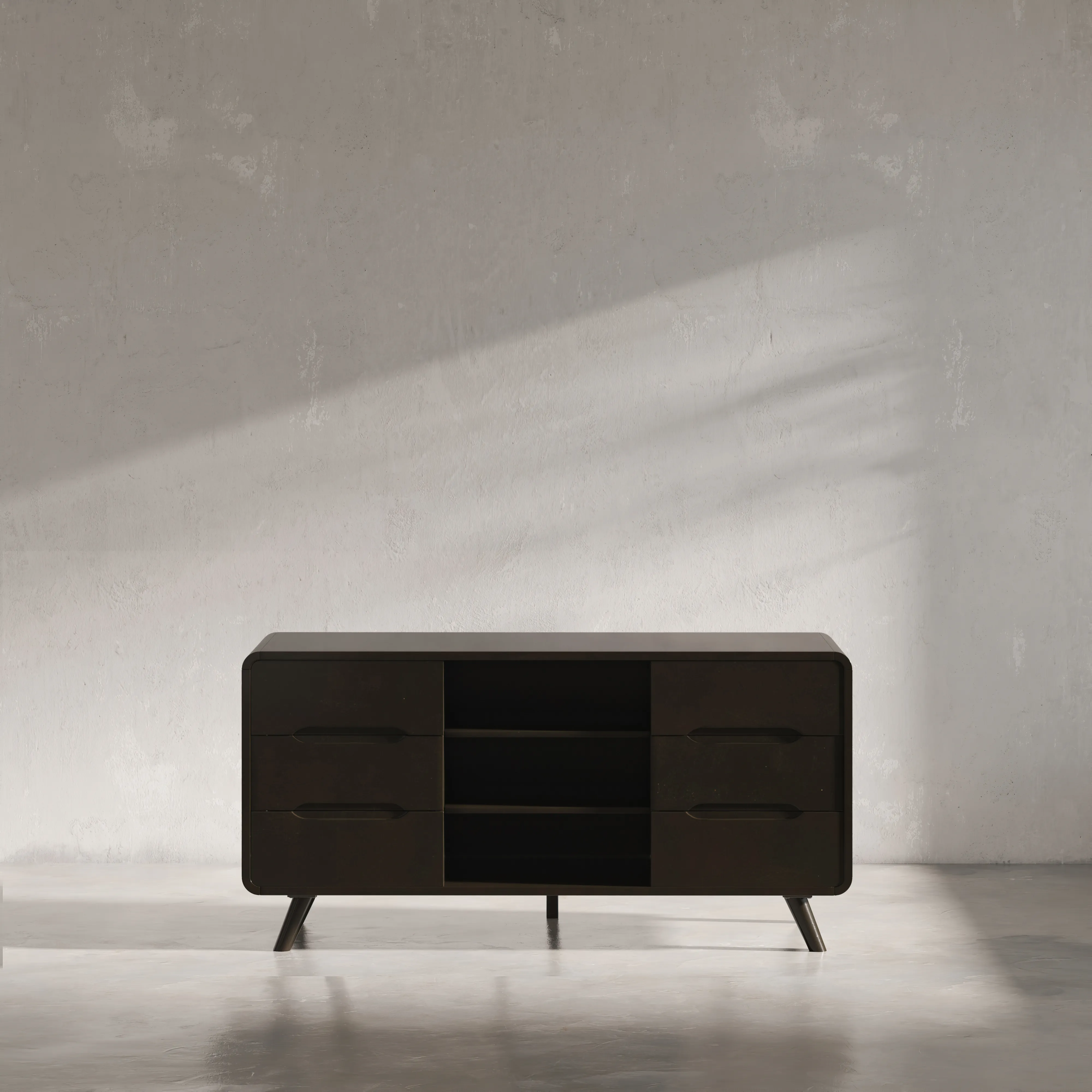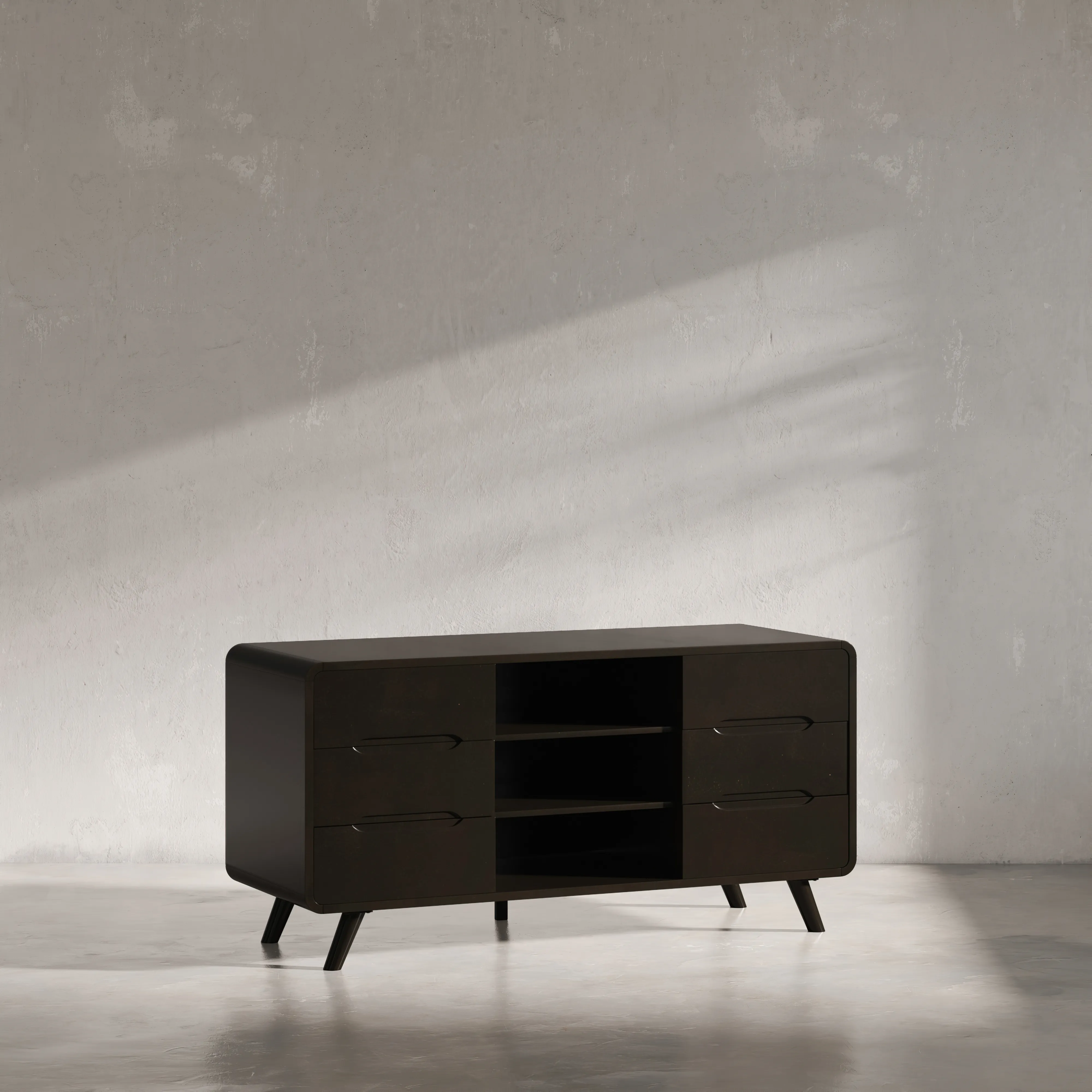 The beauty of the retro mid-century modern style with curved edges and sophisticated finish makes this Marlowe 62" Media Console the perfect addition to your home.