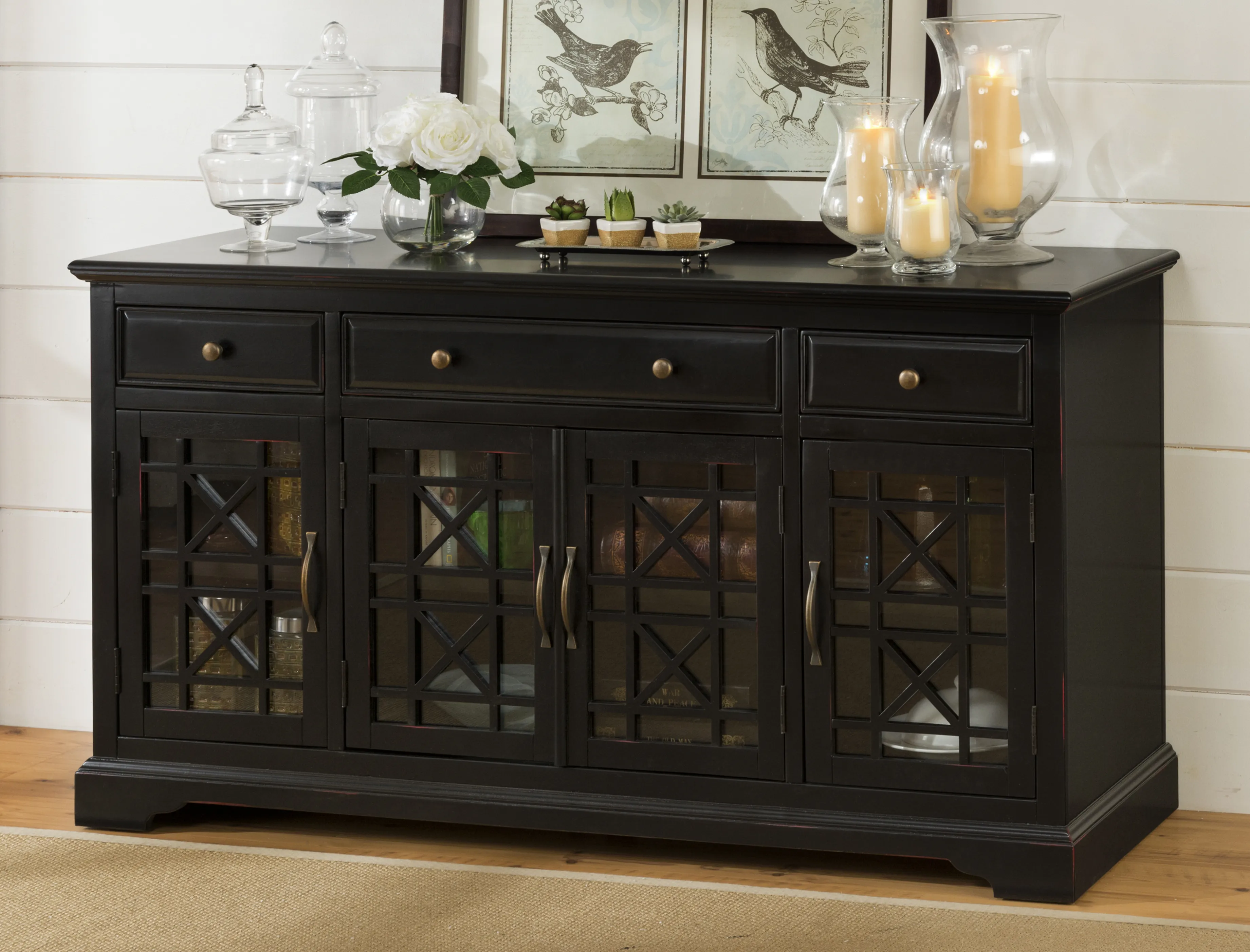 • -Fully Assembled -Adjustable Interiour Shelves -24" Wide Center Drawer -Solid Metal Hardware - - -