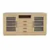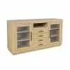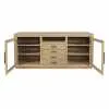Designed to complement modern and transitional spaces, the Auburn Hills 60" Contemporary Media Console delivers both style and storage. Constructed from high-quality rubberwood, engineered wood, and veneer, this console features a refined wood grain that adds warmth to any setting. The two tempered glass doors with sleek black hardware allow for an elegant display of electronics or curated decor. Four spacious center drawers offer ample storage for media accessories, keeping your space neat and clutter-free. Equipped with four adjustable shelves, this unit provides flexibility to accommodate various entertainment components and display needs. Choose from White, Light Oak, or Dark Oak finishes to match your home's aesthetic. Perfect for living rooms, entertainment areas, or home offices, this media console serves as a focal point while maintaining practicality. Designed for everyday use, the Auburn Hills Contemporary Media Console is a refined addition to any home, balancing timeless appeal with modern utility. Discover how this sophisticated storage solution can bring effortless elegance to your space.