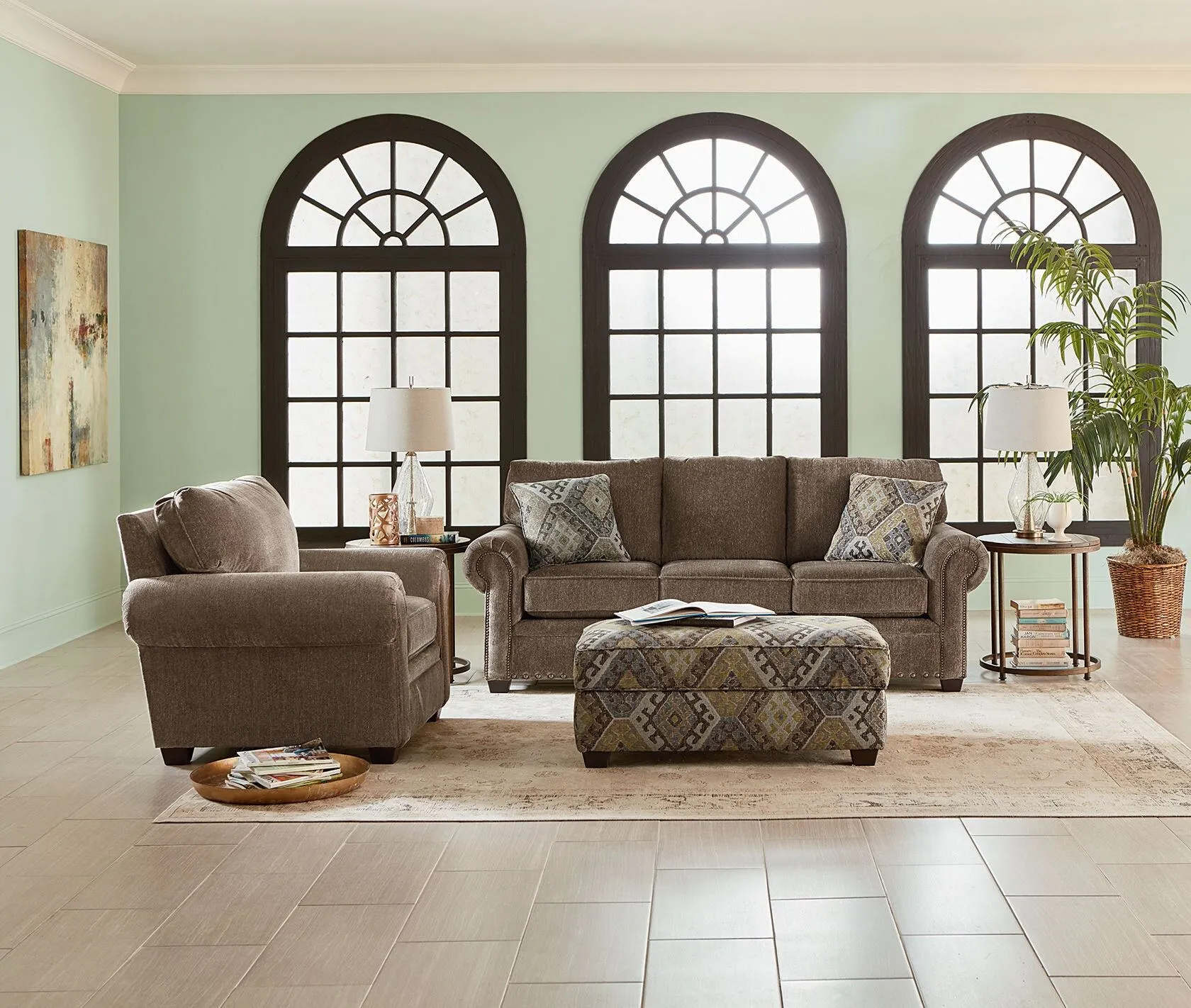 2255 - (ENG 2255FK BRETT SOFA) - 89"W x 38"D x 37"H - Seat Width: 68" (172.7 cm) Seat Depth: 21" (53.3 cm) Seat Height: 21" (53.3 cm) With its three welted seat and back cushions, simple rolled arm, and optional brass nailhead trim, you can't get a much better transitional style than the Brett collection! Get it in your choice of over 400 fabrics to make it truly yours. Available as a sofa, loveseat, chair, ottoman, and storage ottoman.
