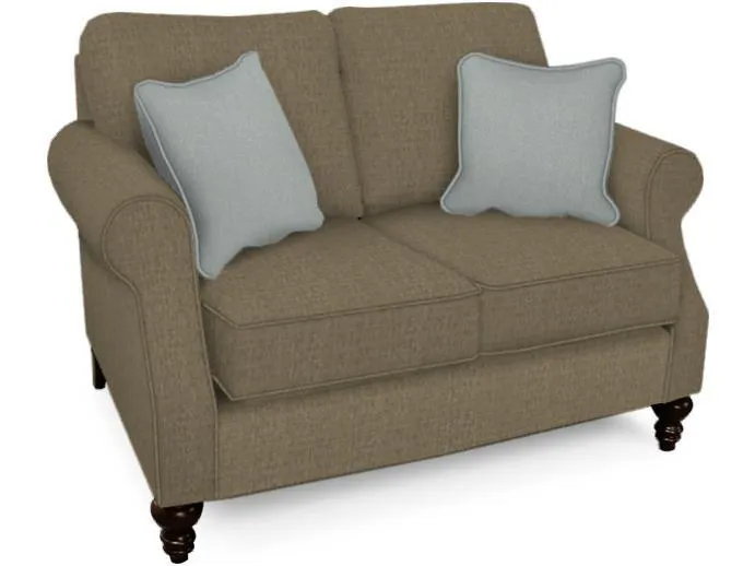 Our Jones collection is a sure winner. It's petite scale is trumped only by its comfort and traditional style. With a scooped rolled arm, clean front rail, and turned wooden leg, how can you go wrong? Customize your fabric and your seat to make it truly your own. This collection includes a sofa and loveseat. Take a look at Brinson for a great coordinating chair!