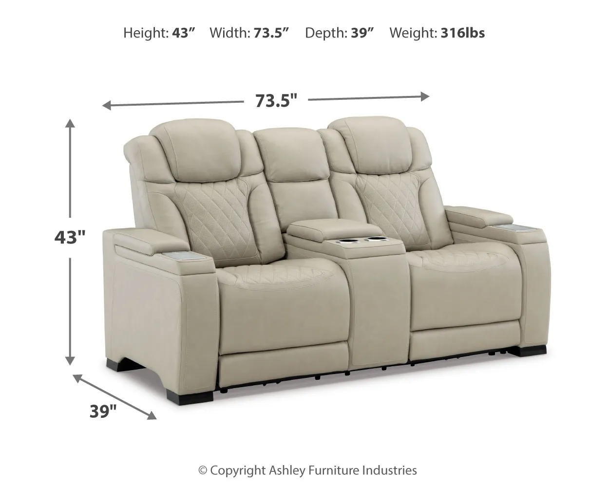 An exceptional winner in home fashion, this power reclining loveseat shows us the beauty of today’s best recliners. Bold diamond stitching on the back and seat invites you to sit and stay awhile. The seating area of this recliner is covered in real leather for feel-good pleasure and exceptional wear, while a skillful leather match exterior upholstery keeps luxury right on budget. When you want to get maximum relaxation, use the power adjustable headrest and extended ottoman for additional comfort. Each power control contains USB and wireless charging, plus a hidden cup holder. A zero gravity mechanism completes the luxurious design.