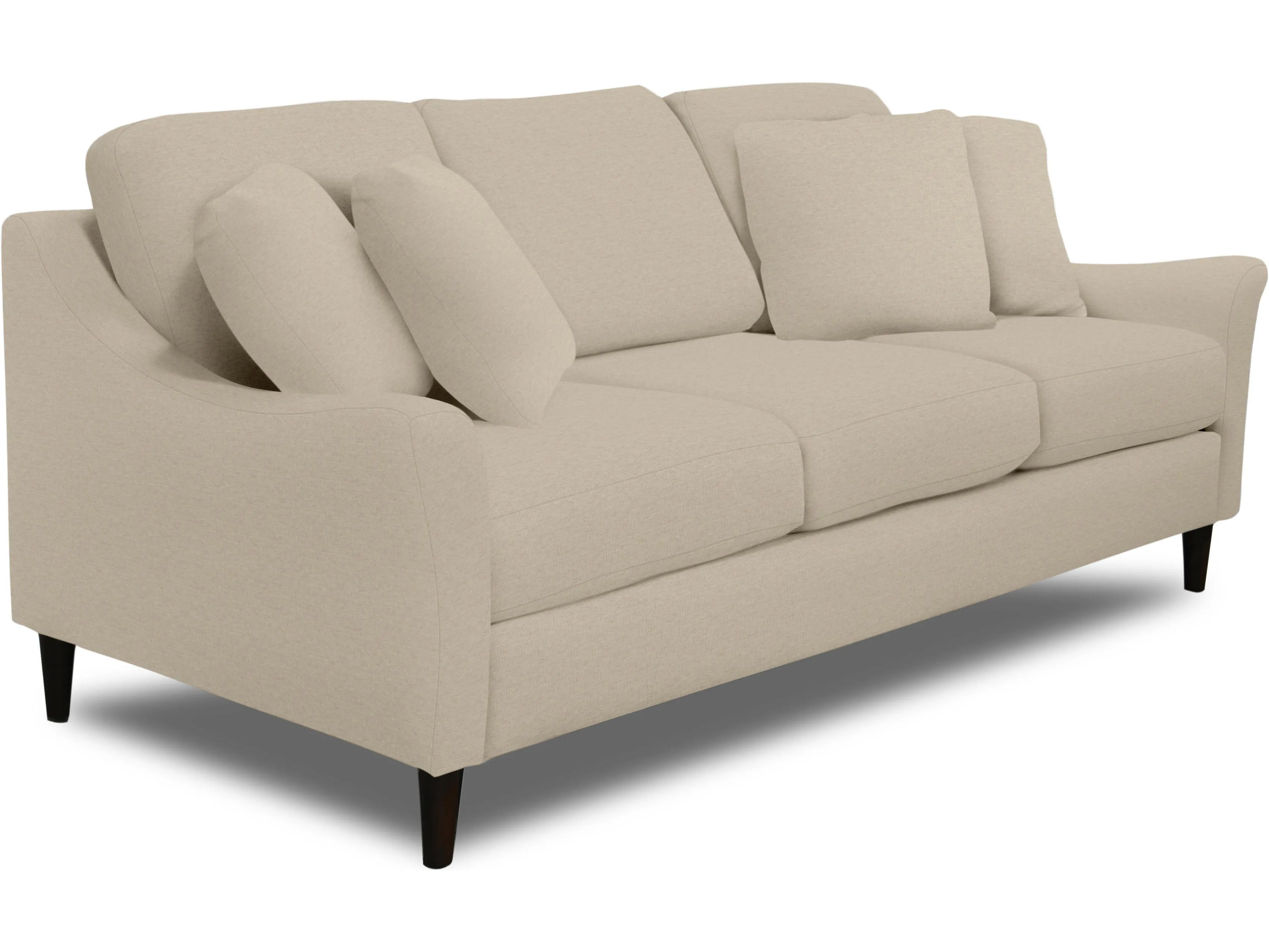 Construction Back: Sinuous wire, loose, block foam with poly fiber wrap, zipper access. Seat: Sinuous wire, block foam with poly fiber wrap, ventilated, reversible. Legs: 1.5''x2.43''x6'', wood, screw-in. Pillows: 4 x 20'' fiber fill. Optional Upgrades: Coil Cushion, Frame Coil, feather blend pillows.