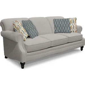 Construction Back: Webbing, loose, poly fiber fill in a channel bag, zipper access. Seat: Sinuous wire, block foam with poly fiber wrap, ventilated, reversible. Legs: 3.25'' x 2.88'' x 2.75'' wood pyramid, screw-in. Pillows: 2 x 20'' fiber fill. Optional upgrades: Coil Cushion, feather blend pillows.