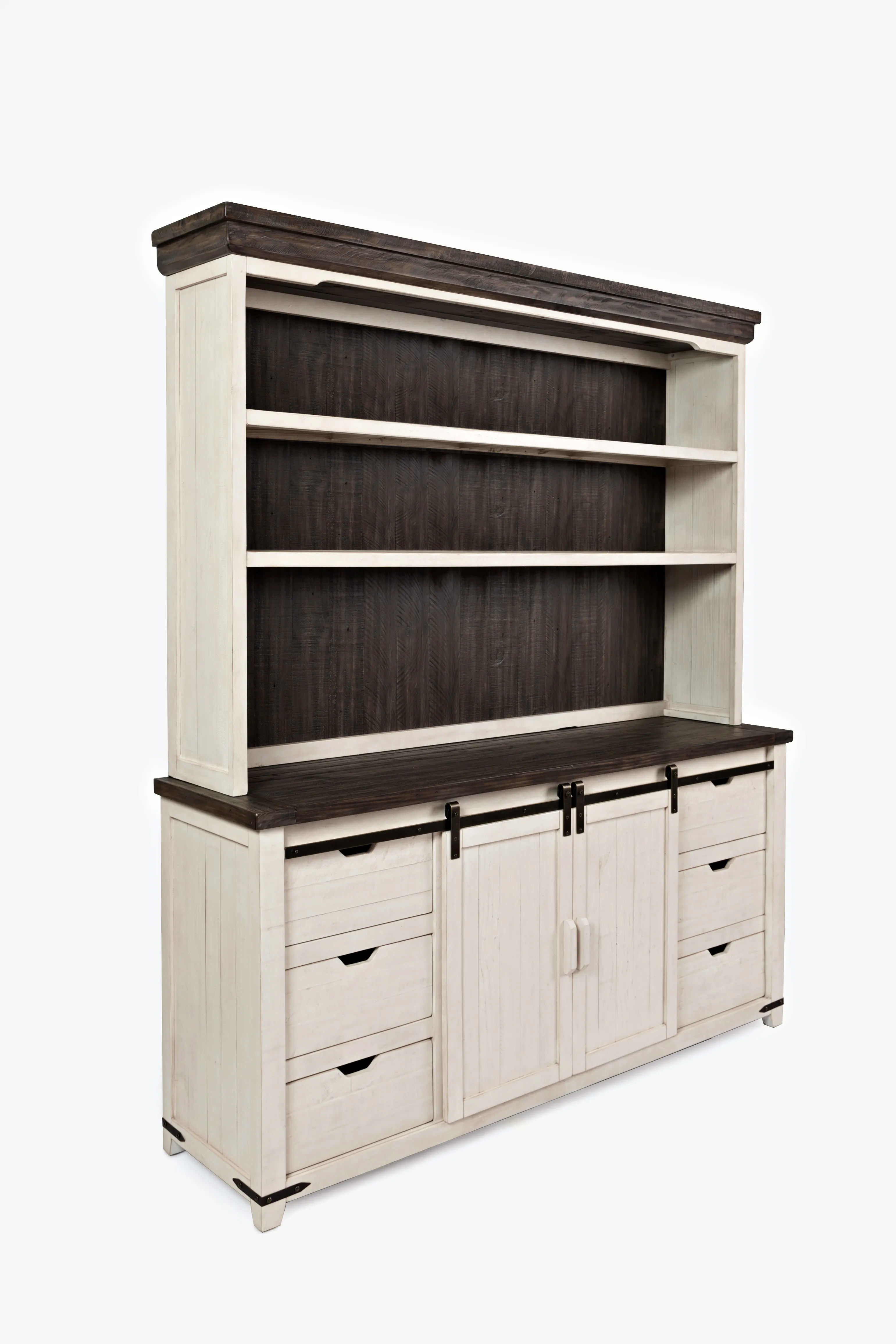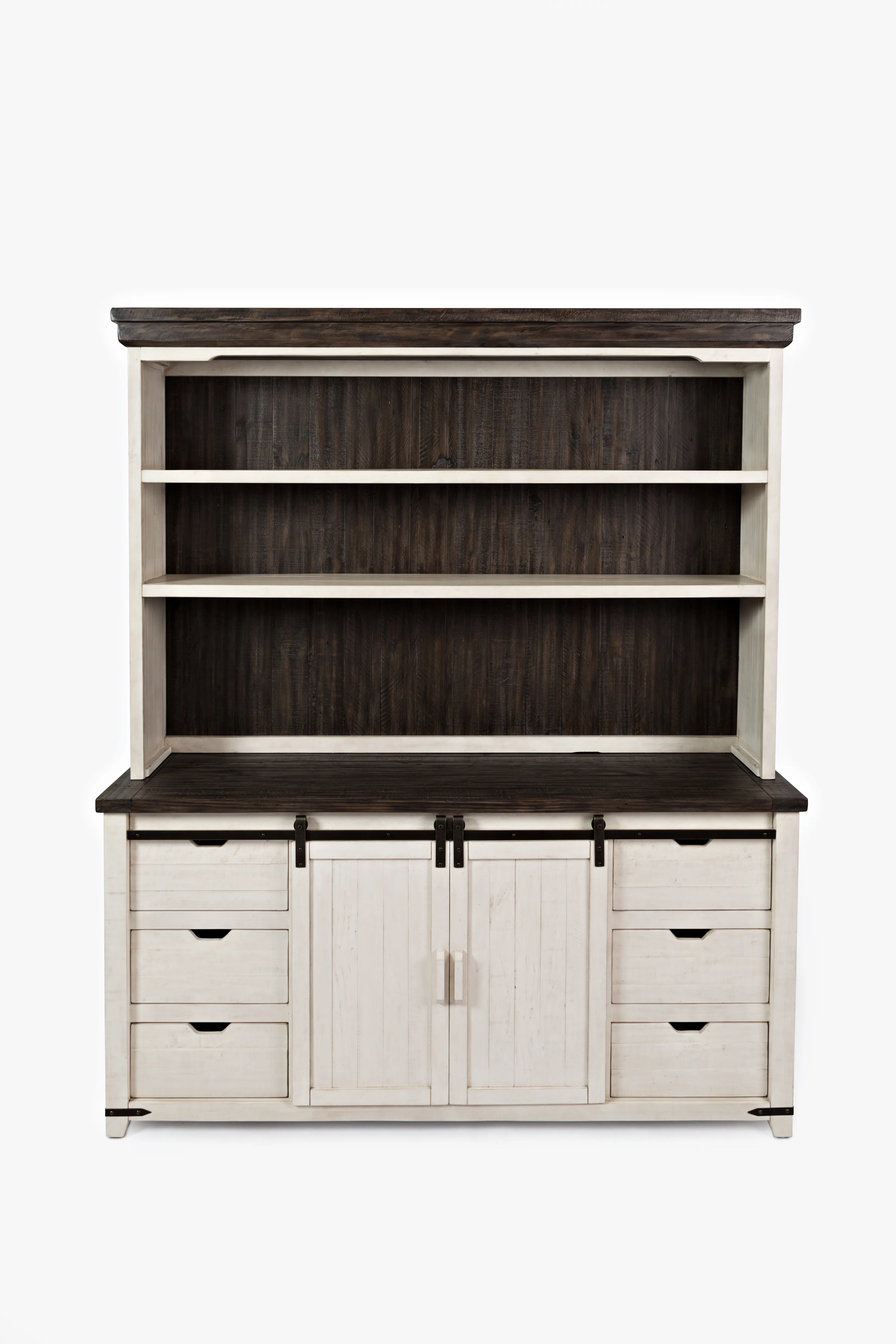 Experience the elegance of rustic farmhouse craftsmanship with the Madison County Collection. Made from solid reclaimed Pine, each piece showcases the natural beauty of the wood through unique weathering and intentional stress markings. Upgrade your dining or living room space with the comfortable and sophisticated style of this Madison County Server and Hutch. A classic farmhouse piece, the bottom server has six drawers and two rolling barn doors, and the top has two built-in shelves that will be the perfect country style addition to your home.