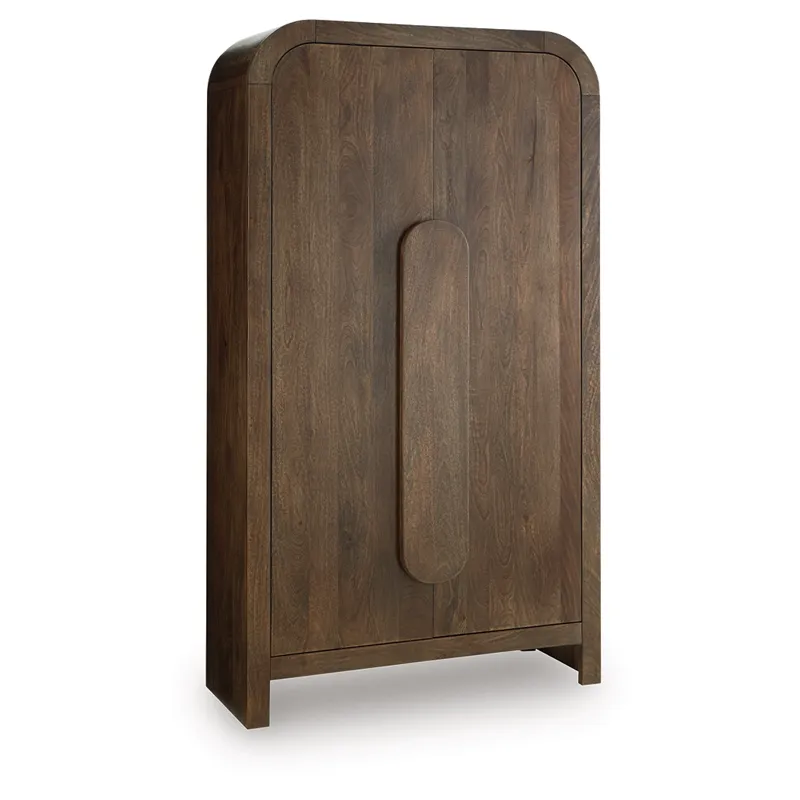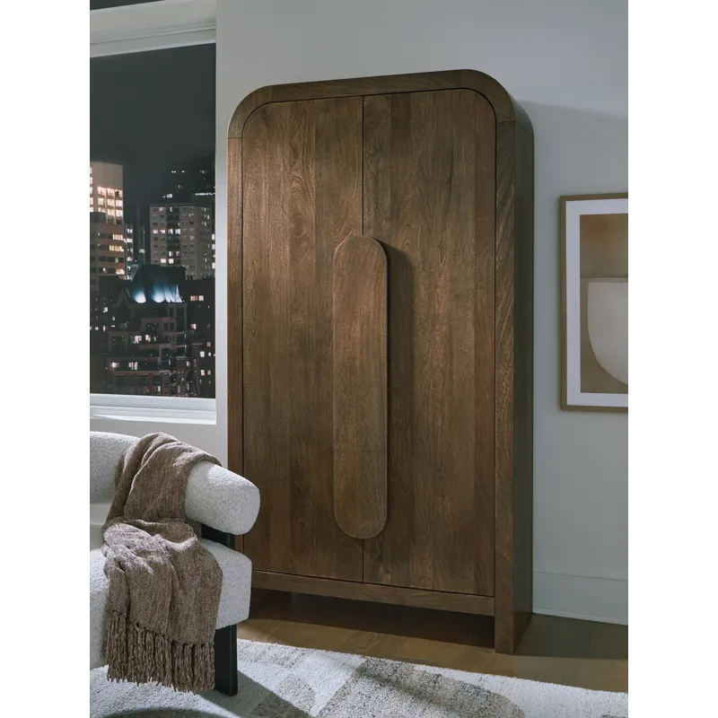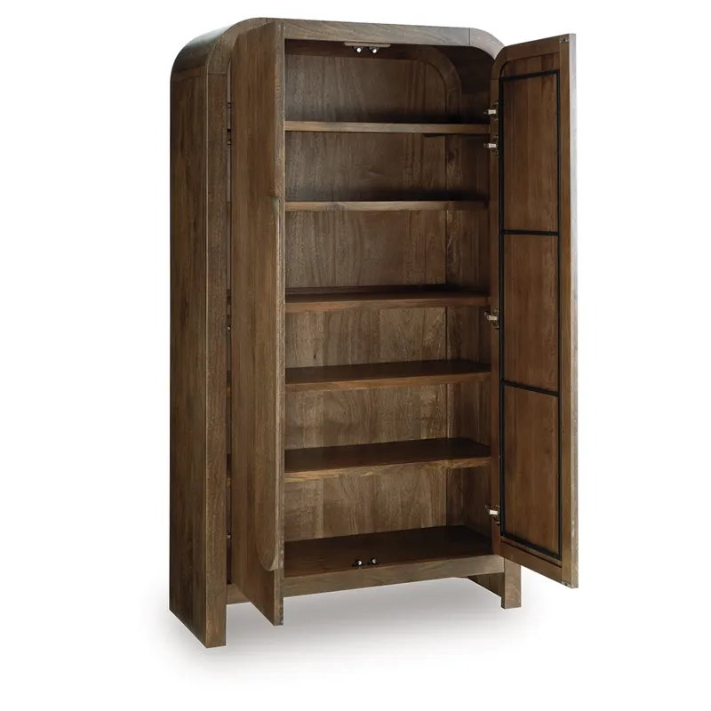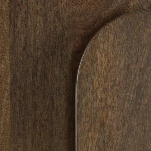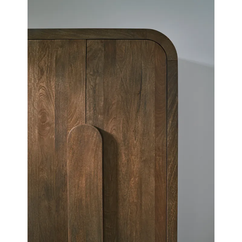Indulge in functional elegance with this accent cabinet. It showcases the natural beauty of mango wood, with gracefully rounded corners creating a softened, welcoming profile. A medium brown finish brings an air of warmth and authenticity to your living space. And behind two soft-close doors, an assortment of shelves offers versatile storage.