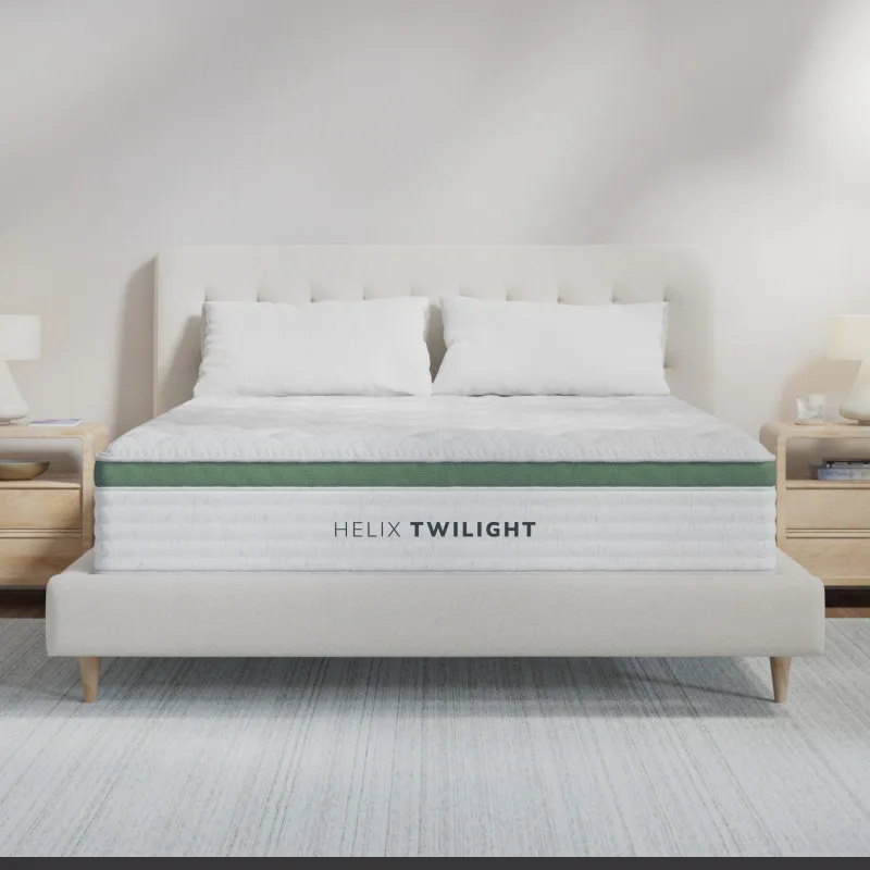 The Helix Twilight is our firm model recommended for side sleepers and people who toss and turn at night. The mattress features memory foam with a dense foam feel and supports spinal alignment by providing pressure relief at your hips and shoulders.