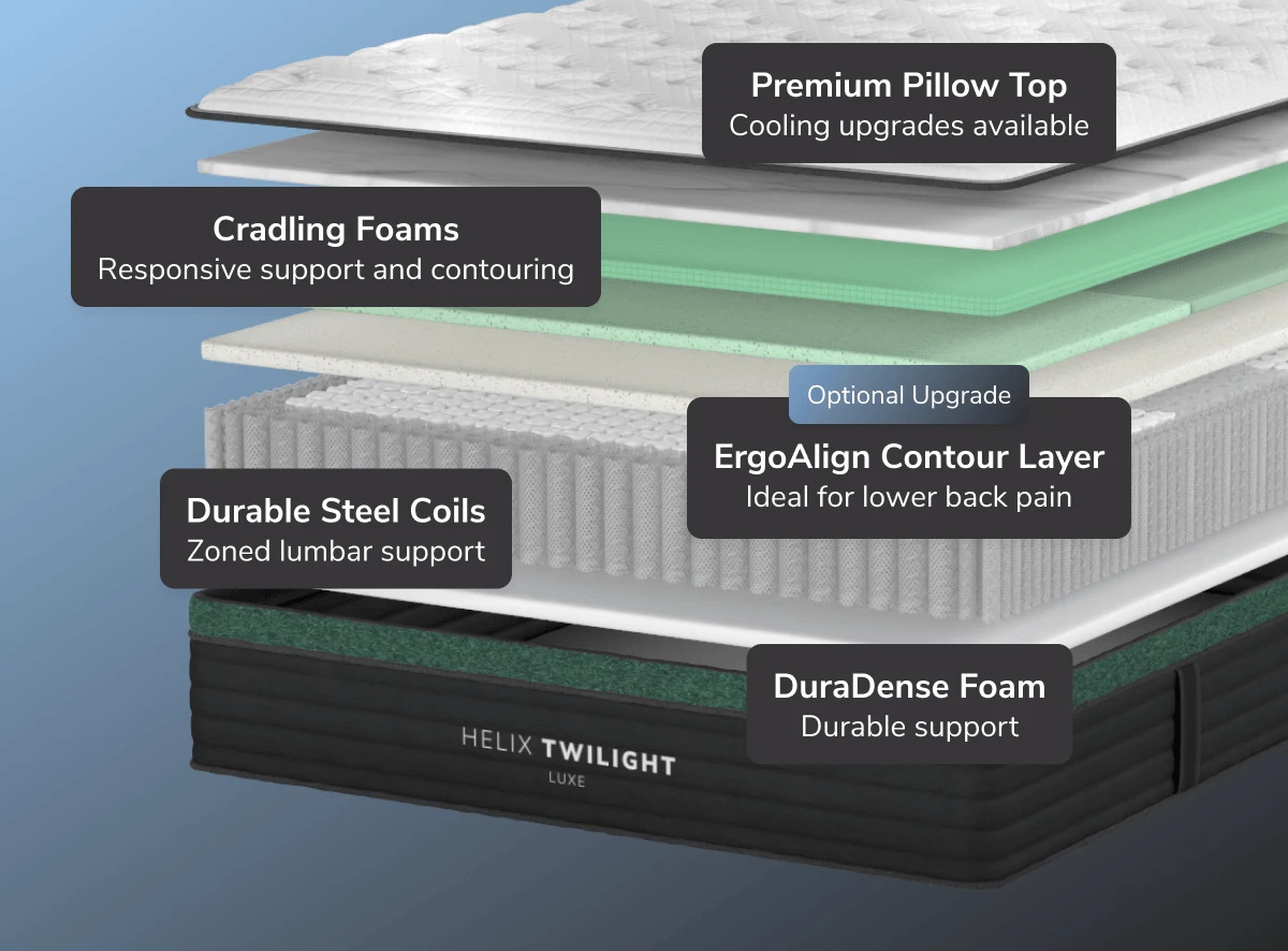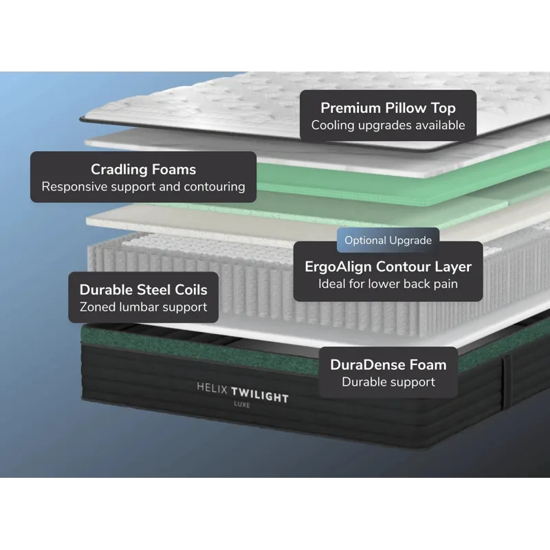Helix Twilight Luxe Mattress w/ GlacioTex Cooling Cover & ErgoAlign Layer